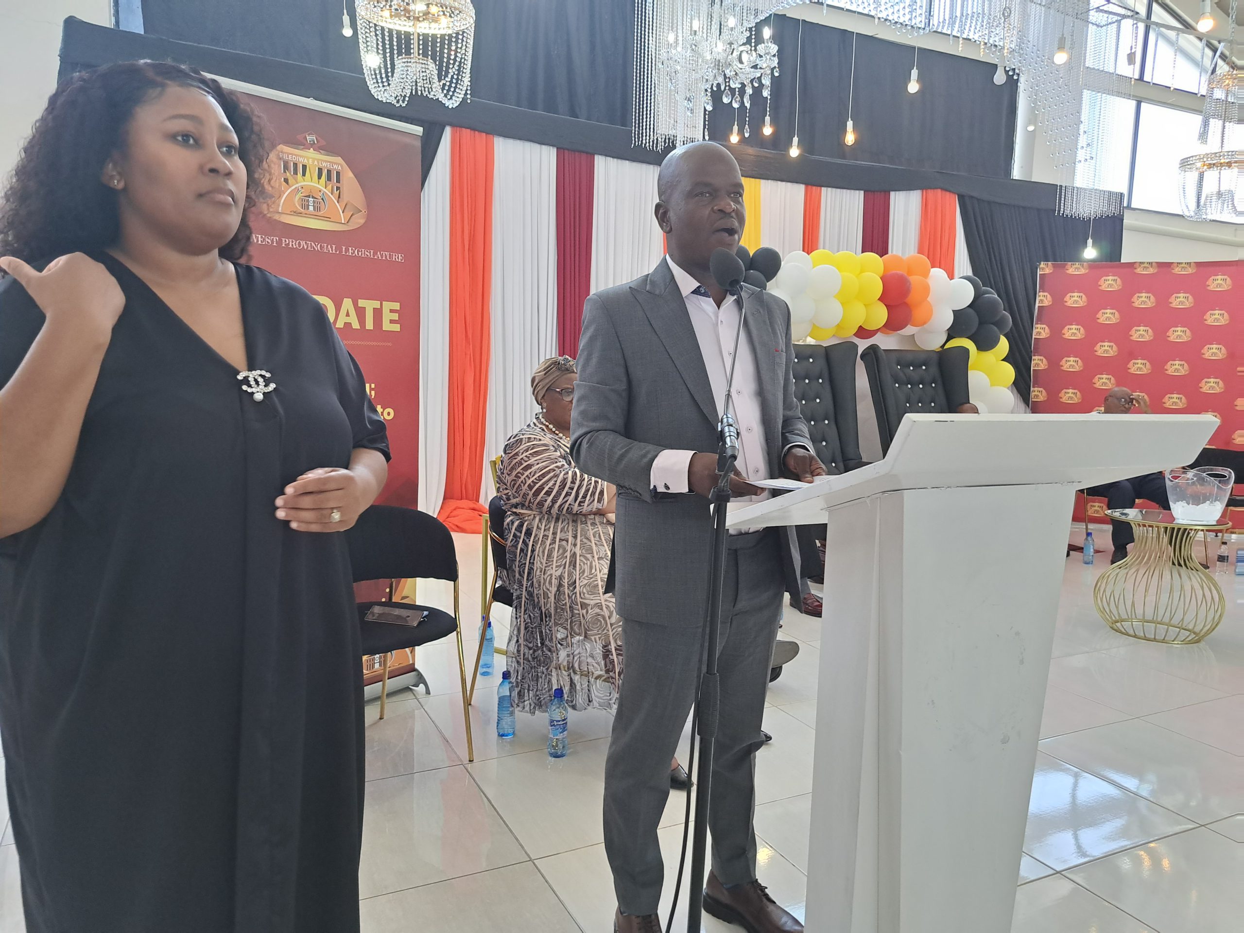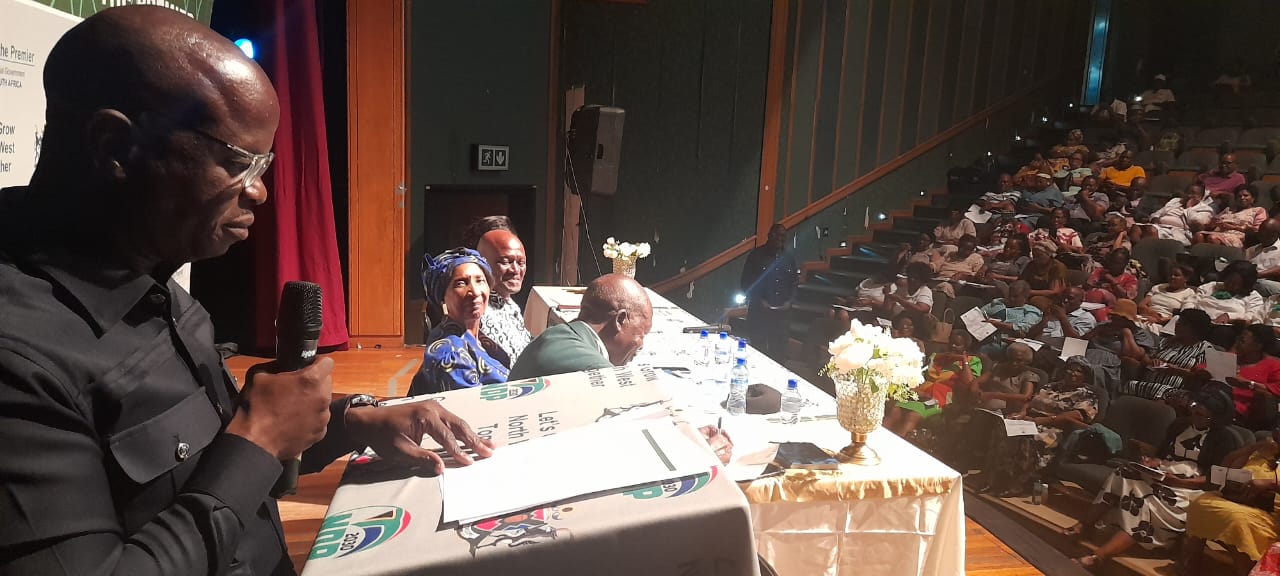 North West Social Development MEC Lazarus Mokgosi (left) addressing the Annual General Meeting of the province's leg of the South African Older Persons Forum in Mahikeng
