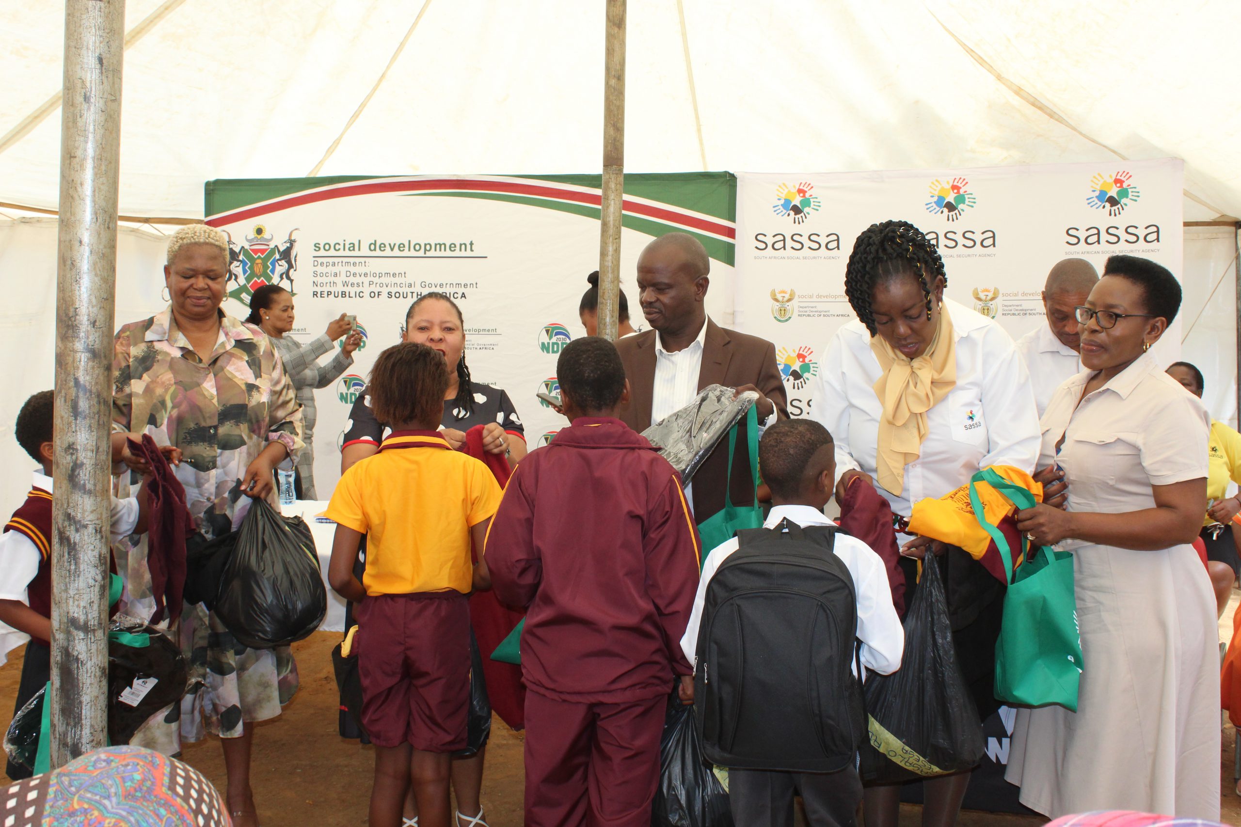 Destitute families in Tswaing local municipality received social relief of distress in the form of food parcels from Social Development MEC Basetsana Sussana Dantjie as part of Thuntsha Lerole service...