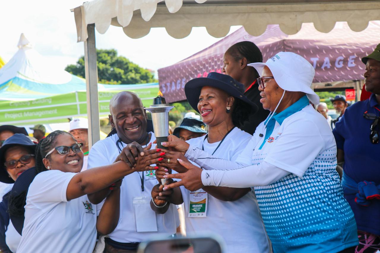 A torch hand over symbolising the North West as the 2025 host province of the National Golden Games. Mpumalanga hosted the 2024 ones.