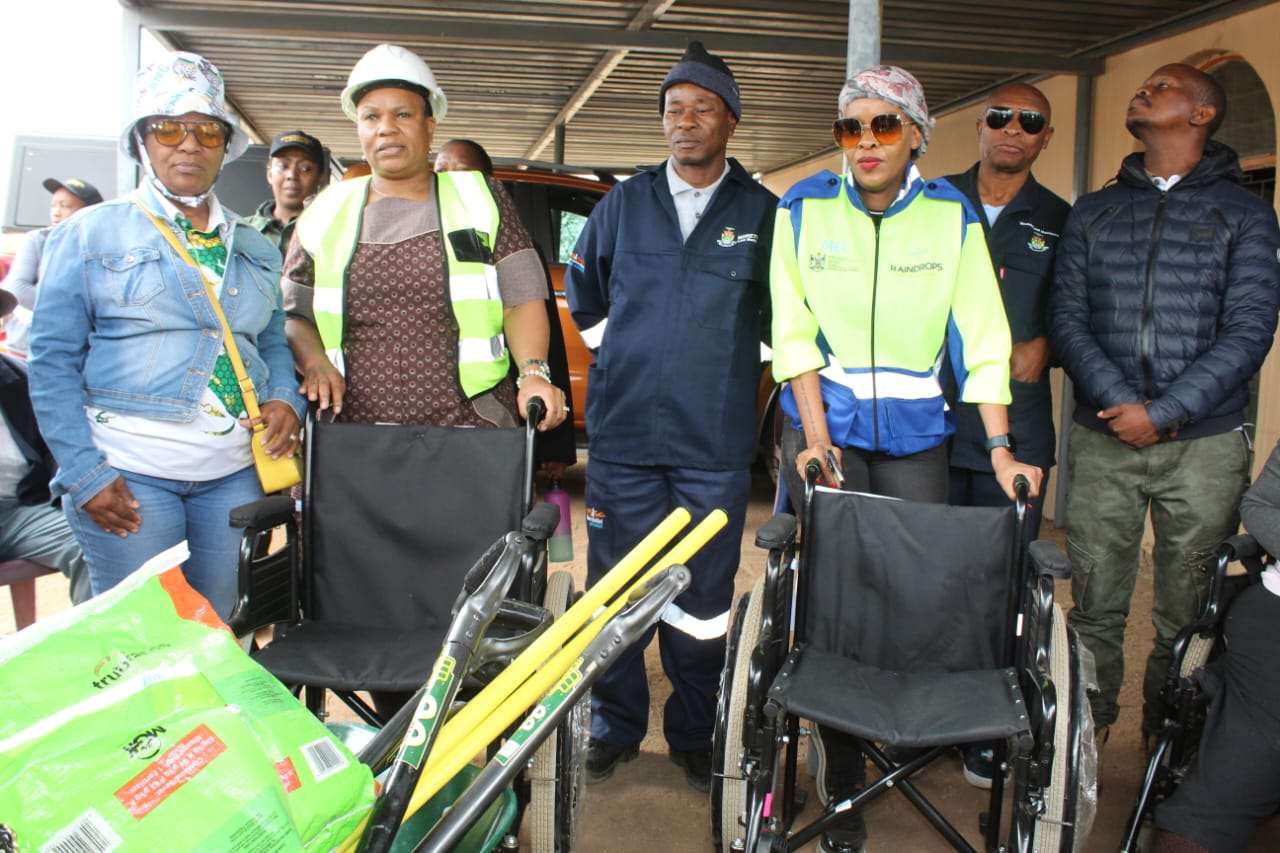 MEC Dantjie donating wheelchairs to members of the Moretele community during a Thuntsha Lerole service delivery programme held in Kromkuil village