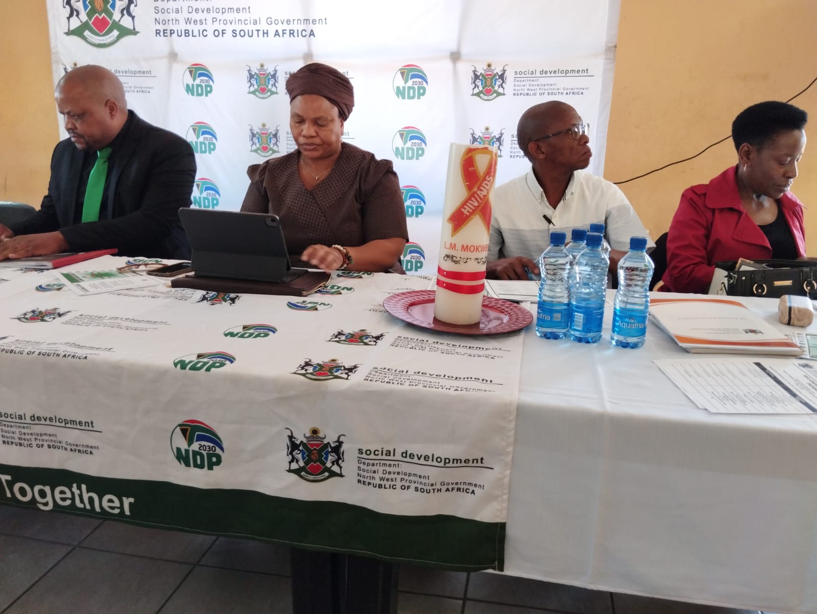 Social Development MEC Dantjie (second left) and some of the departmental managers meeting NPOs in the Dr Kenneth Kaunda district.