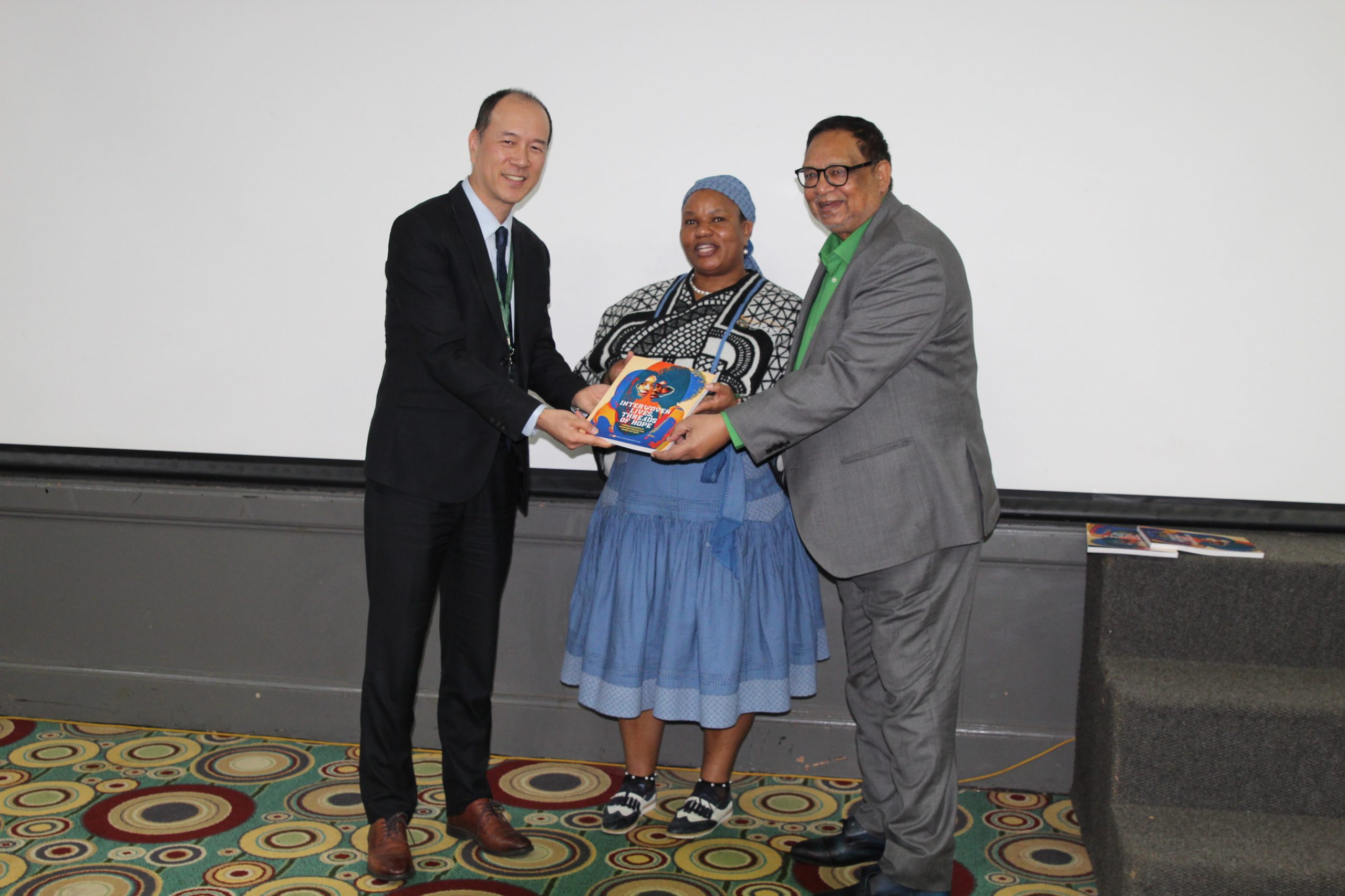 UNPF representative Yu Yu, MEC Basetsana Dantjie and Deputy Minister of Social Development Hanief Hendricks officially launching the State of the World Population Report for 2024.