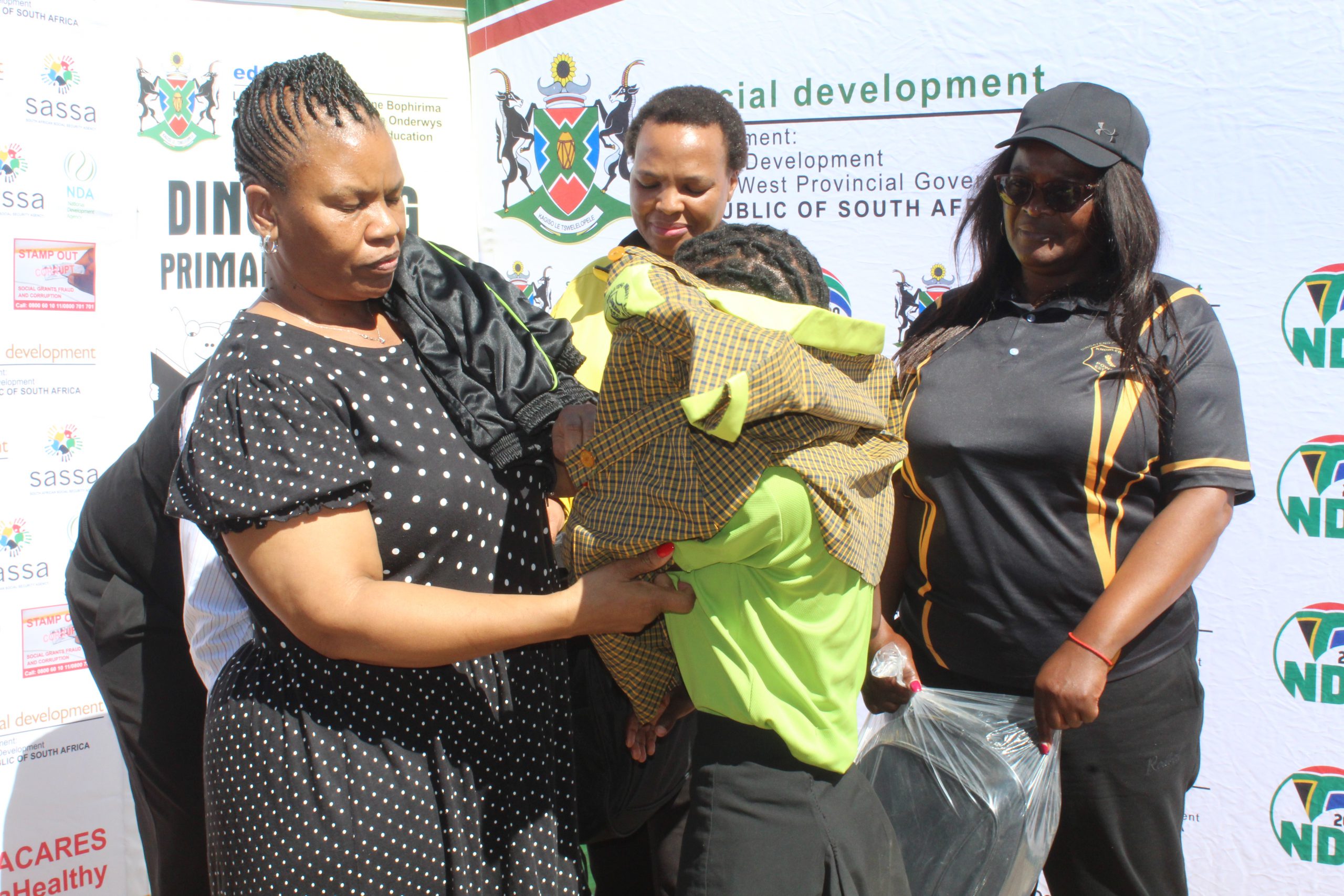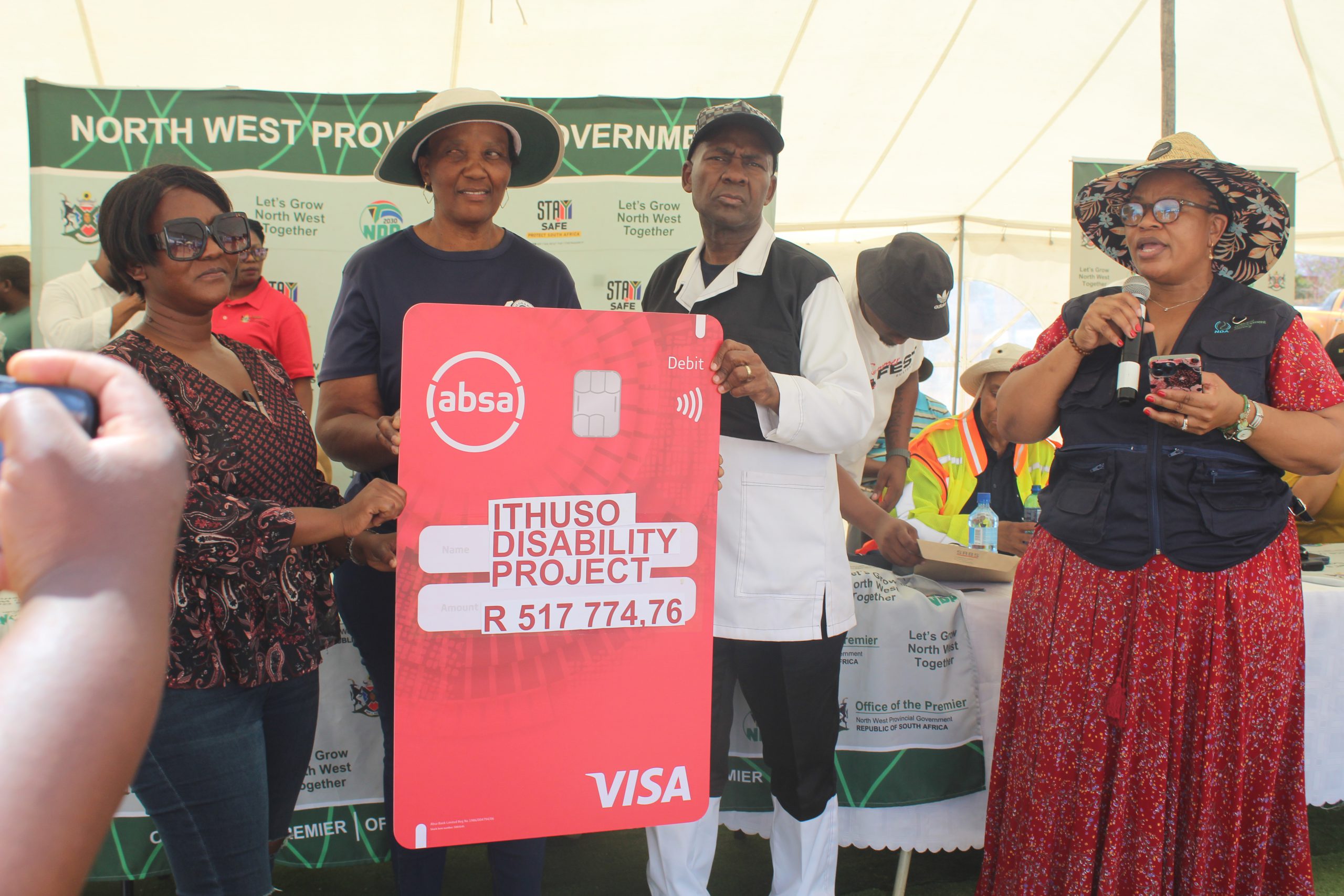 MEC Dantjie (second from right) is one of the people who donated monies to NPOs at the Thuntsha Lerole Reloaded accelerated service delivery programme held in Segakwaneng in the Moses Kotane Local Municipality.