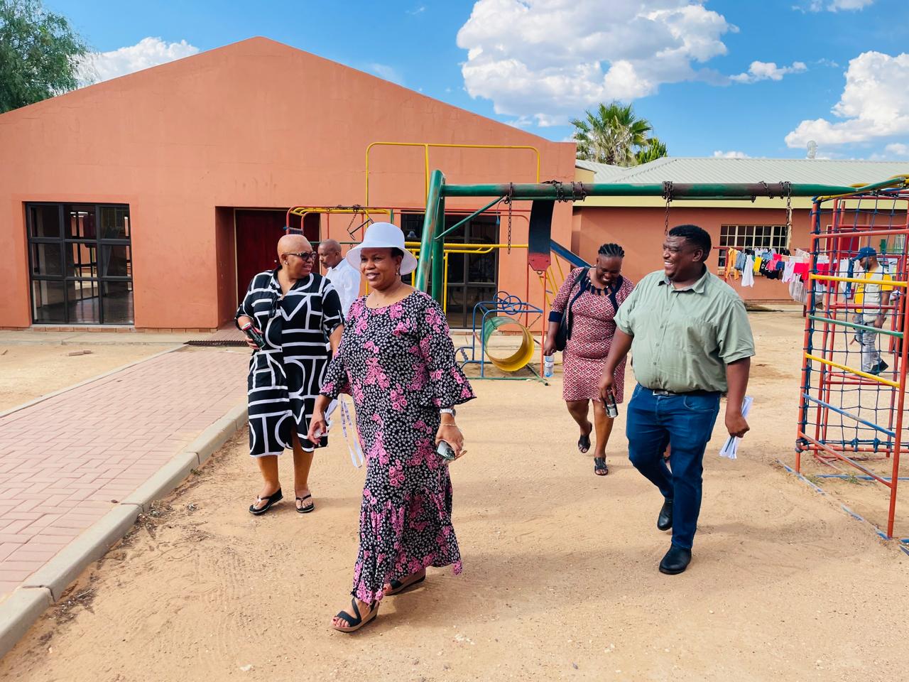 MEC Dantjie (white hat) visiting the Vryburg-based Khuseleka One-stop centre as part of observance of the 16 days of no violence against women and children campaign